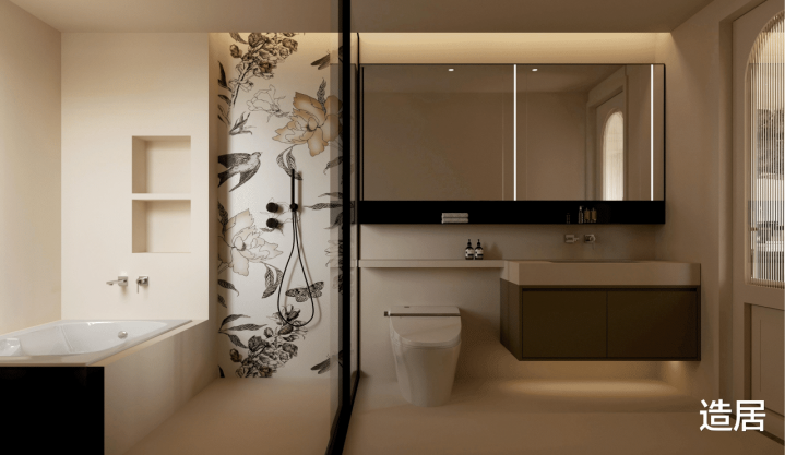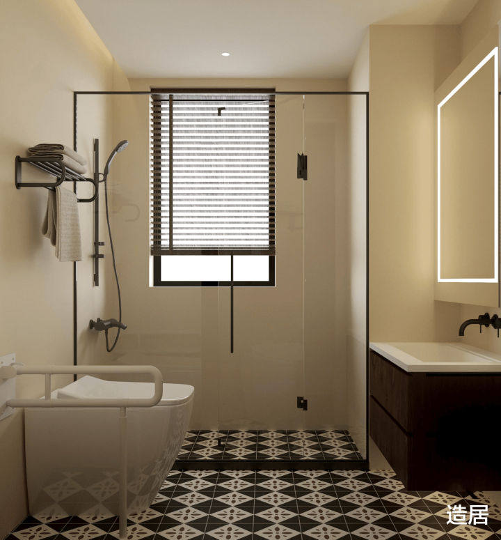 氛围灯:缓解压抑感淋浴区顶部或壁龛里藏圈柔光灯,晚上起夜不用开强光,柔和光线既能看清路,又不晃醒睡意。我家就这么装,同住的长辈都说 “半夜上厕所舒服多了”。