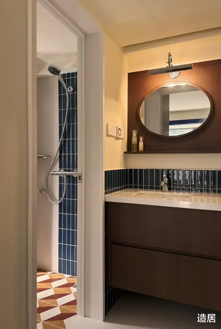 洗手台不用贪大,选不影响过道通行的尺寸,避免开门撞柜子。之前有业主过道窄,硬装大洗手台,最后只能返工改小。